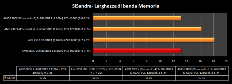 Osservando i grafici noteremo la differenza con controparte intel ma, nonostante il divario, le prestazioni sono buone sopratutto se confrontate con altri chipset Amd. A nostro parere avremmo potuto ottenere dei risultati migliori se nel sistema fossero state montate Ram più performanti, come ad esempio delle memorie a 1600Mhz: i tempi di accesso alla memoria sarebbero diventati molto più rapidi, giovando su tutto il sistema.